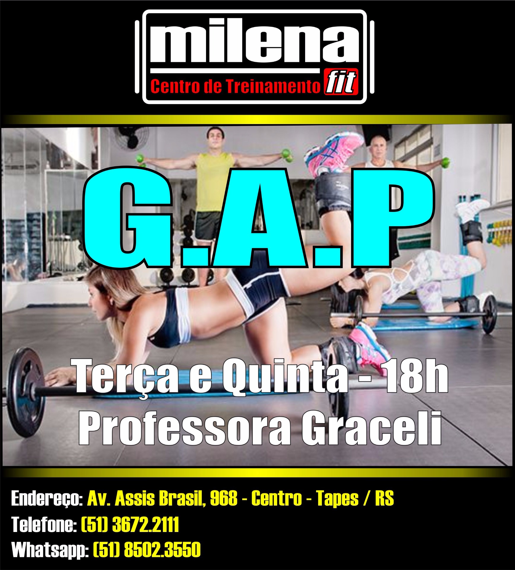 GAP significa definição de músculos e queima de gorduras nas regiões dos glúteos, abdômen e pernas.